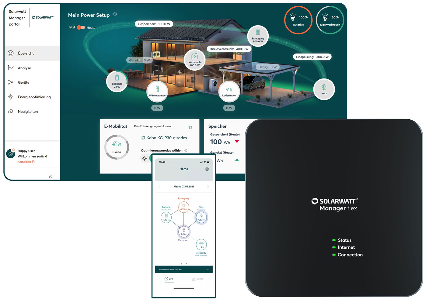 Der Solarwatt Manager ist ein intelligentes System zur Steuerung und Überwachung von Photovoltaikanlagen und Batteriespeichersystemen. Er bietet dem Anwender zahlreiche Funktionen: